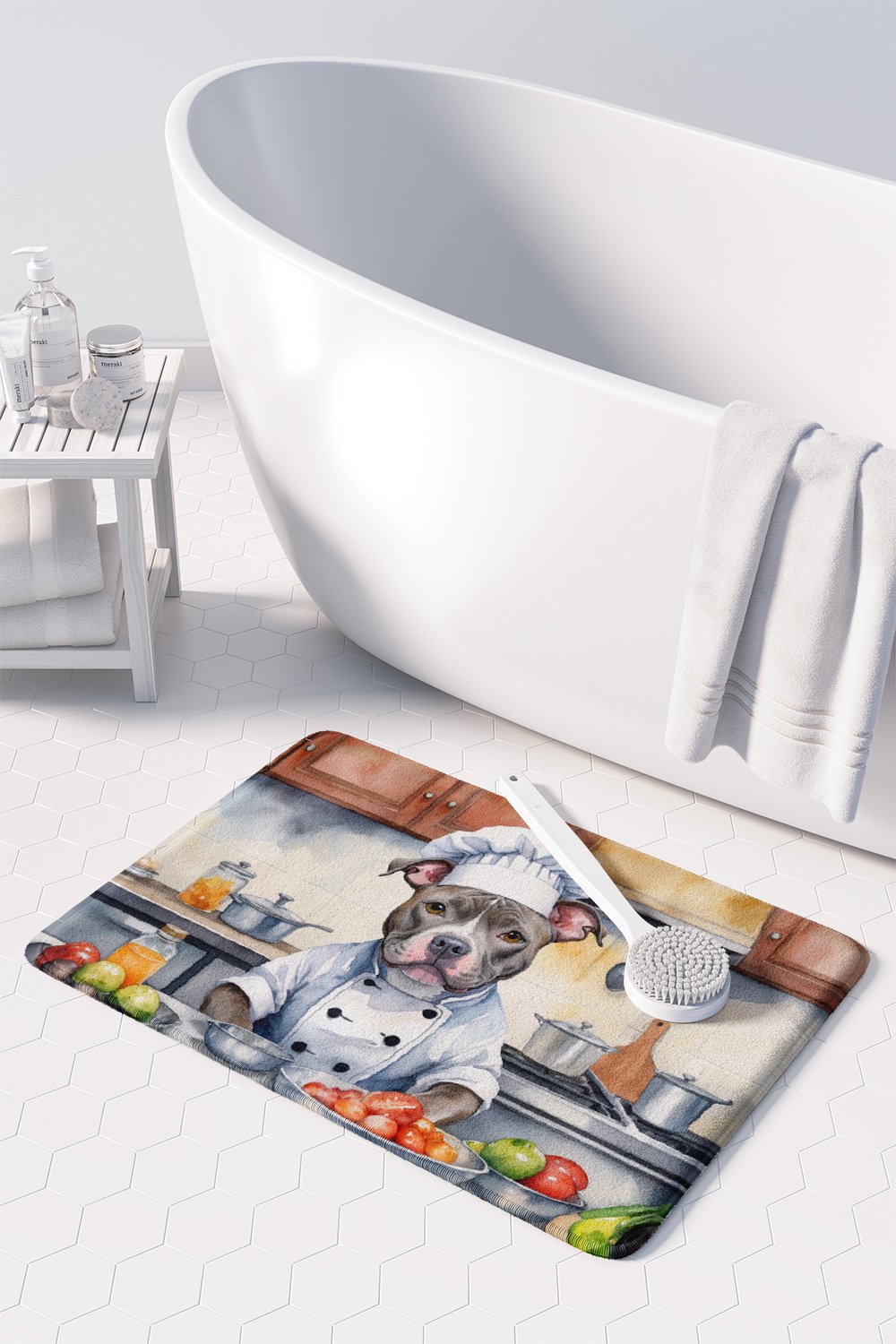 Pit Bull Terrier The Chef Memory Foam Kitchen Mat Machine Washable Anti-Fatigue Mat Cushion Comfort Bath Mat or Kitchen Rug